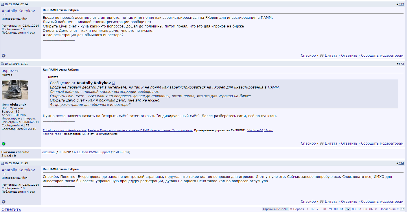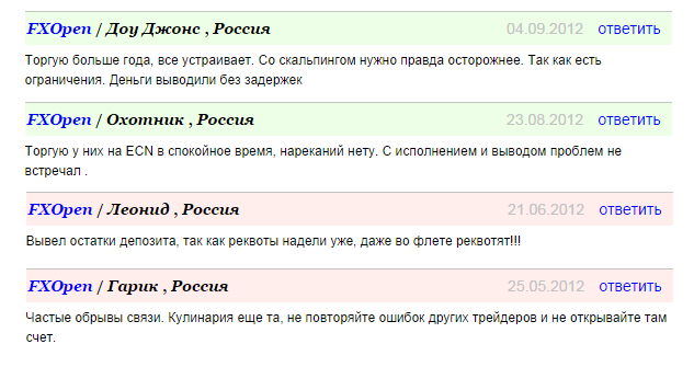 FXOpen отзывы от трейдеров в большинстве случаев очень хорошие. На форуме MMGP (ММГП) трейдерская ветка FXOpen довольно активно обсуждается с положительной стороны. Также привожу отзывы о FXOpen от инвесторов с того же форума MMGP. Очень редко, но все же попадаются и отрицательные отзывы от горе трейдеров, которые не умеют торговать, а в своих бедах обвиняют Форекс брокера.